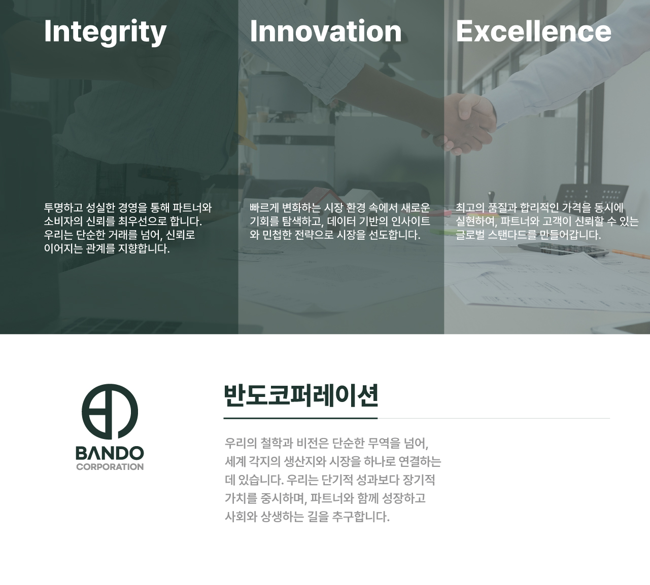 반도코퍼레이션(주) | 02-732-8787 | bando@bandocorp.co.kr | 서울특별시 서초구 논현로 19, 2층 | Business Registration Number 104-81-47475